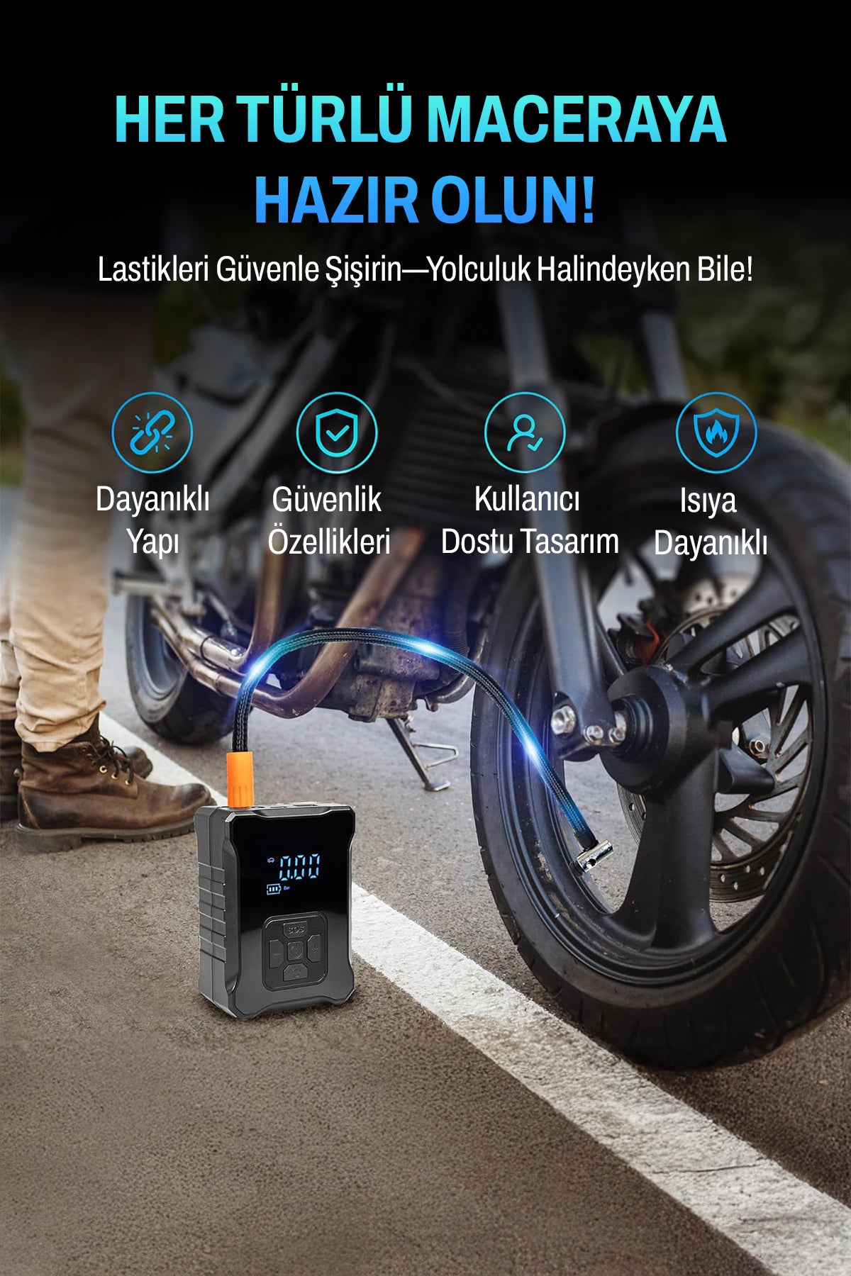 • 🏍️ Motosiklet Modu: 5-50 PSI