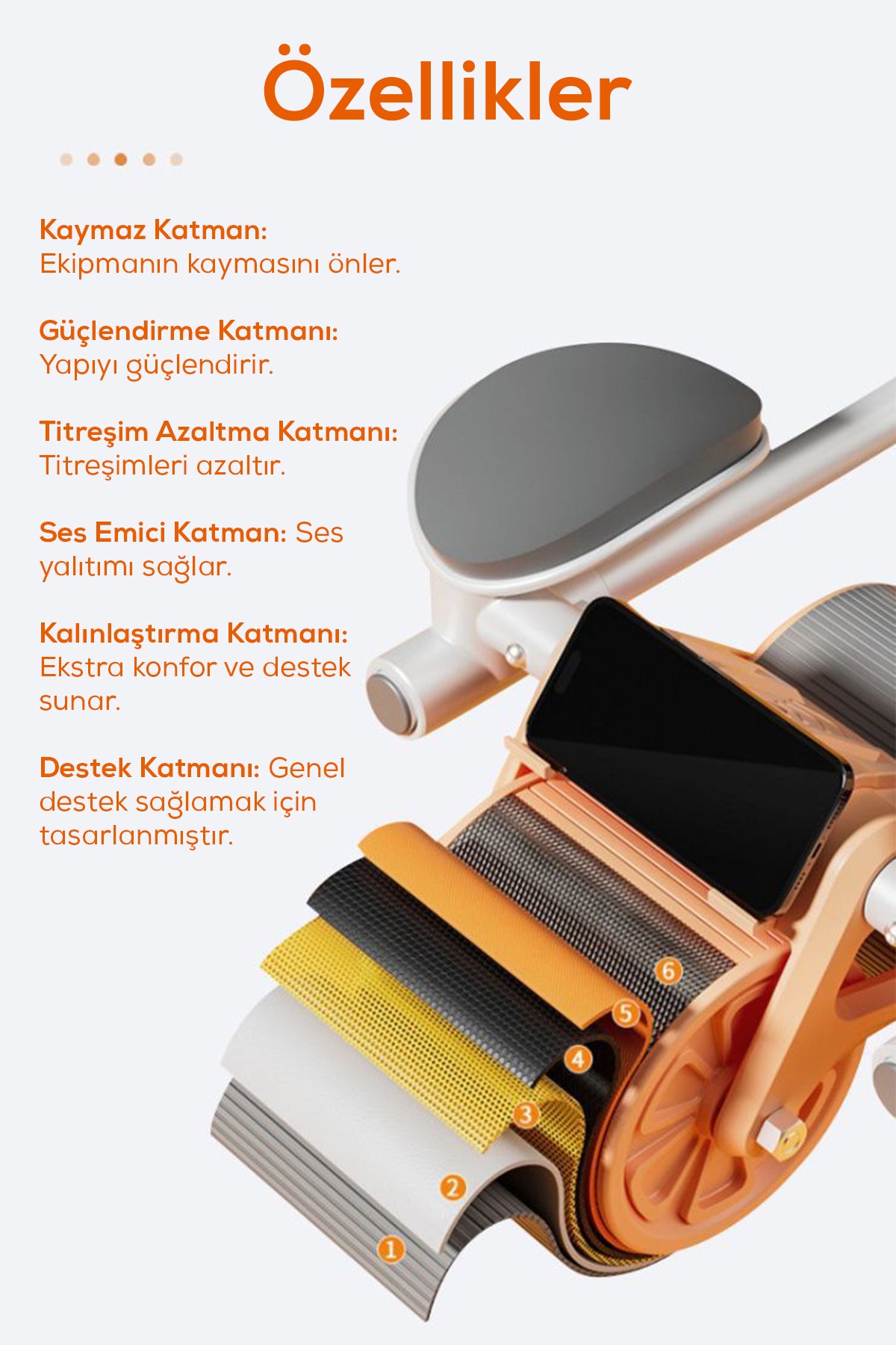 ✔️Titreşim azaltma katmanı ile konforlu egzersiz.