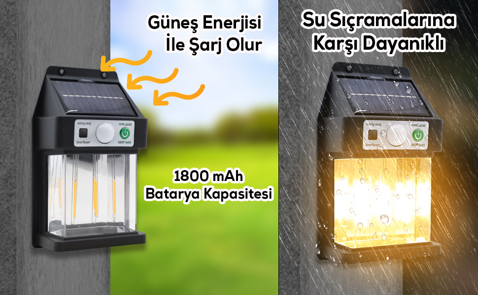 - Güneş paneli sayesinde gündüz güneş enerjisini toplayıp gece kullanım için depolar.