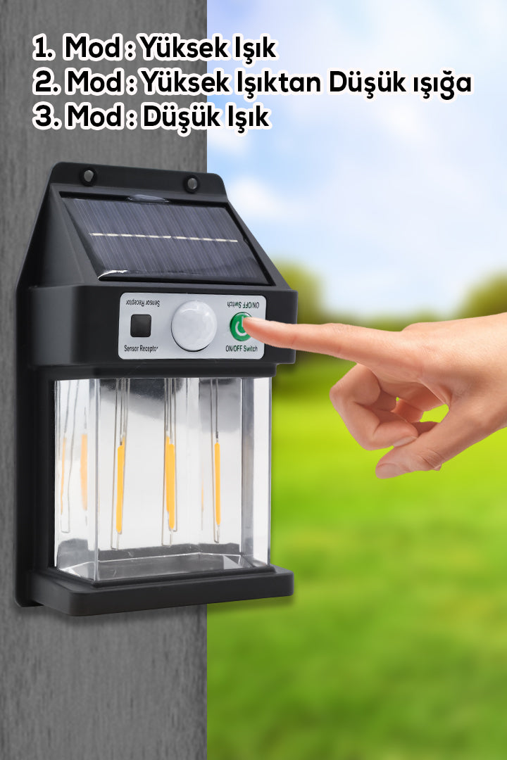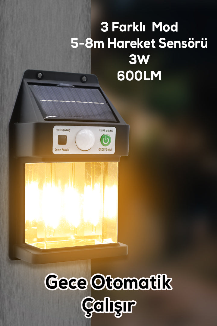 3 Ledli Güneş Enerjili Sensörlü Duvar Lambası