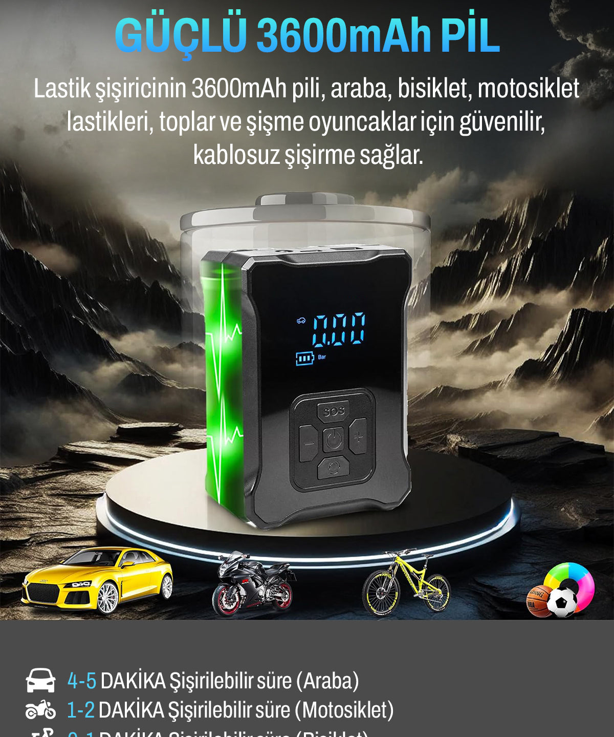Dijital Şarj Edilebilir Hava Kompresörü